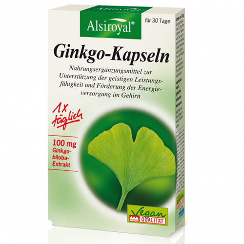 Alsiroyal® Ginkgo-Kapseln zur Nahrungsergänzung können mit einem Extrakt aus den Blättern des Ginkgo-Baumes die Mikro-Durchblutung unterstützen und tragen neben einer gesunden Ernährung und Lebensweise zur Förderung der geistigen Leistungsfähigkeit bei.