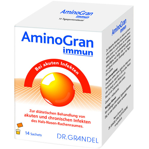 Vor allem Aminosäuren, die Bausteine der Eiweiße, sind interessante Stoffe zur Stärkung der Abwehr. Es gibt zwanzig eiweißbildende Aminosäuren, die wir bei einer ausgewogenen und gesunden Ernährung mit der Nahrung zuführen. Für die Stärkung des Immunsystems sind einige Aminosäuren besonders wichtig. Die Kombination von spezifischen Aminosäuren mit ausgewählten Vitaminen, Mineralstoffen und Spurenelementen runden Amino Gran ab.