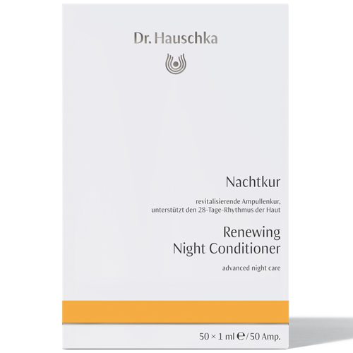 Mit unserer Nachtkur wird Ihnen die Wirkkraft der fettfreien Dr. Hauschka Nachtpflege besonders deutlich: Über einen Kurzeitraum von vier Wochen regt eine Komposition mit Heilpflanzenauszügen und Silber die Eigenkräfte Ihrer Haut gezielt an. Als 28-Tage-Kur begleiten die kraftvollen Ampullen einen kompletten Erneuerungszyklus der Haut. Egal welches Hautbild Sie momentan zeigen – Sie werden spüren, wie Ihre Haut auflebt. Wir empfehlen unsere Nachtkur nicht nur Kennern der fettfreien Nachtpflege, sondern gerade auch als Produkt für den Einstieg.
