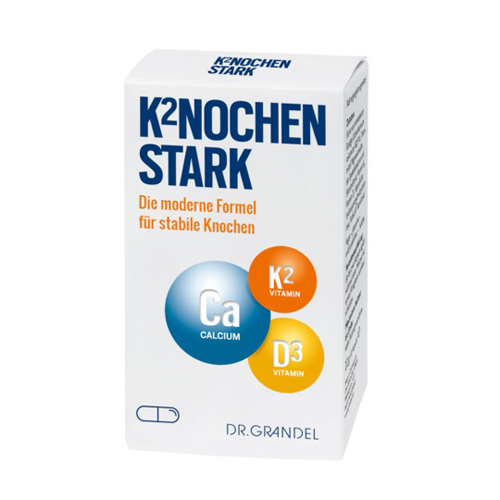 DR. GRANDEL K²NOCHENSTARK liefert die Nährstoffe Calcium, Vitamin D3 und Vitamin K2, die für die Gesundheit der Knochen eine wichtige Rolle spielen.