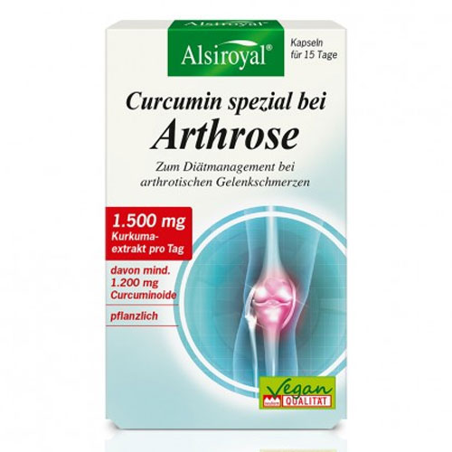 Alsiroyal® Curcumin spezial bei Arthrose ist aufgrund seiner Eigenschaften und Merkmale für Erwachsene zum Diätmanagement bei arthrotischen Beschwerden wie z. B. Gelenkschmerzen geeignet.