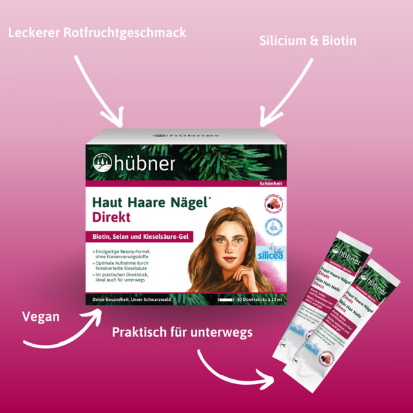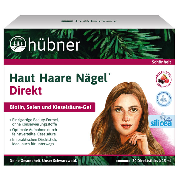 Mit dem Verzehr von hübner® Haut Haare Nägel Direkt Rotfrucht wird die Schönheit nachhaltig von innen unterstützt. Enthalten ist Silicium in reiner, natürlicher Form mit Selen und Biotin.
