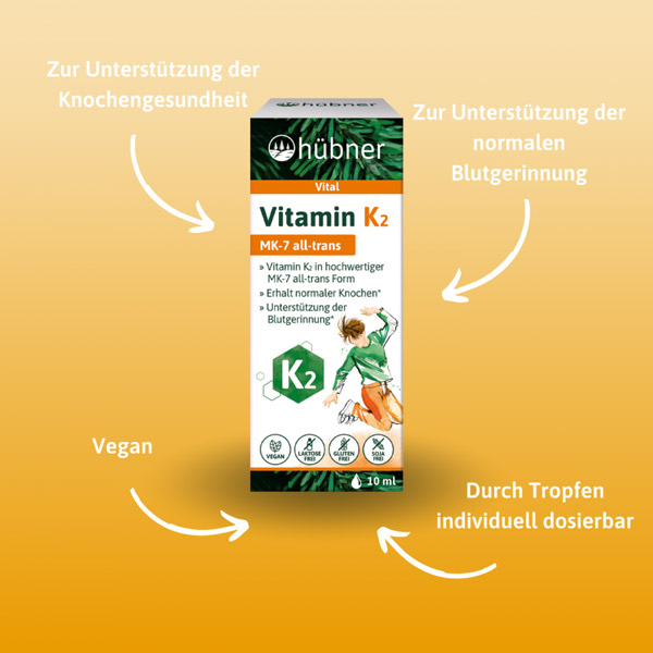 Vitamin K2 zur Unterstützung der Knochengesundheit: Das Vitamin ist wichtig für den Erhalt normaler Knochen und zur Unterstützung der normalen Blutgerinnung.