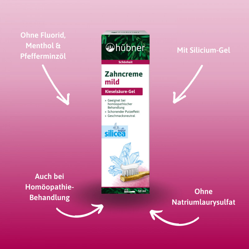 Zahnpflege mit rein mineralischem Silicium-Gel zur Gesunderhaltung der Zähne und des Zahnbettes, ohne Pfefferminz-Öl und Menthol. (Alter Name: Hübner Original silicea® Zahnpasta ohne Pfefferminzöl)