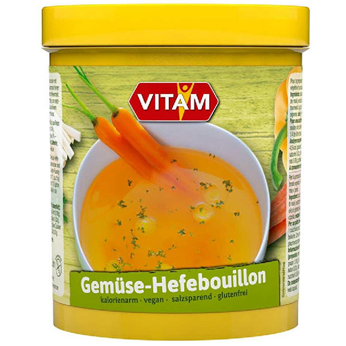 Die Gemüse-Hefebouillon von Vitam erfreut sich seit Jahrzehntengrößter Beliebtheit — ob als warme Zwischenmahlzeit oder zum salzsparenden Würzen von Suppen und Gemüsegerichten. Der darin enthaltene Vitam-R Hefeextrakt verleiht ihr das besondere Aroma. Auf Grund der qualitativ hochwertigen Zutaten schmeckt die VITAM Gemüse-Hefebouillon auch ohne Geschmacksverstärker und Aromen.